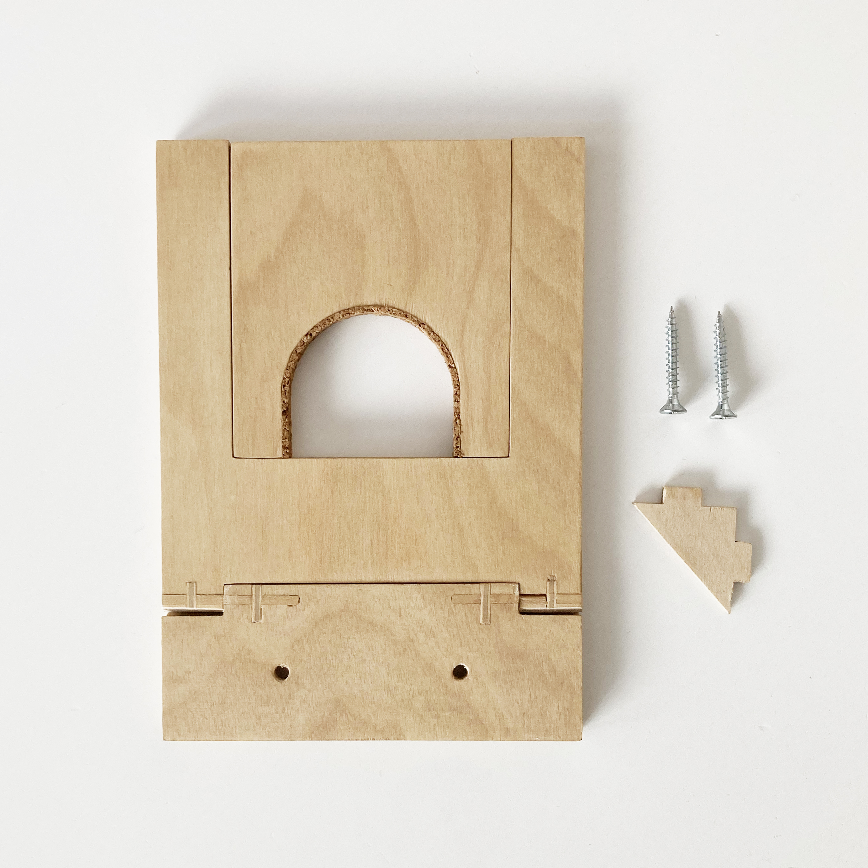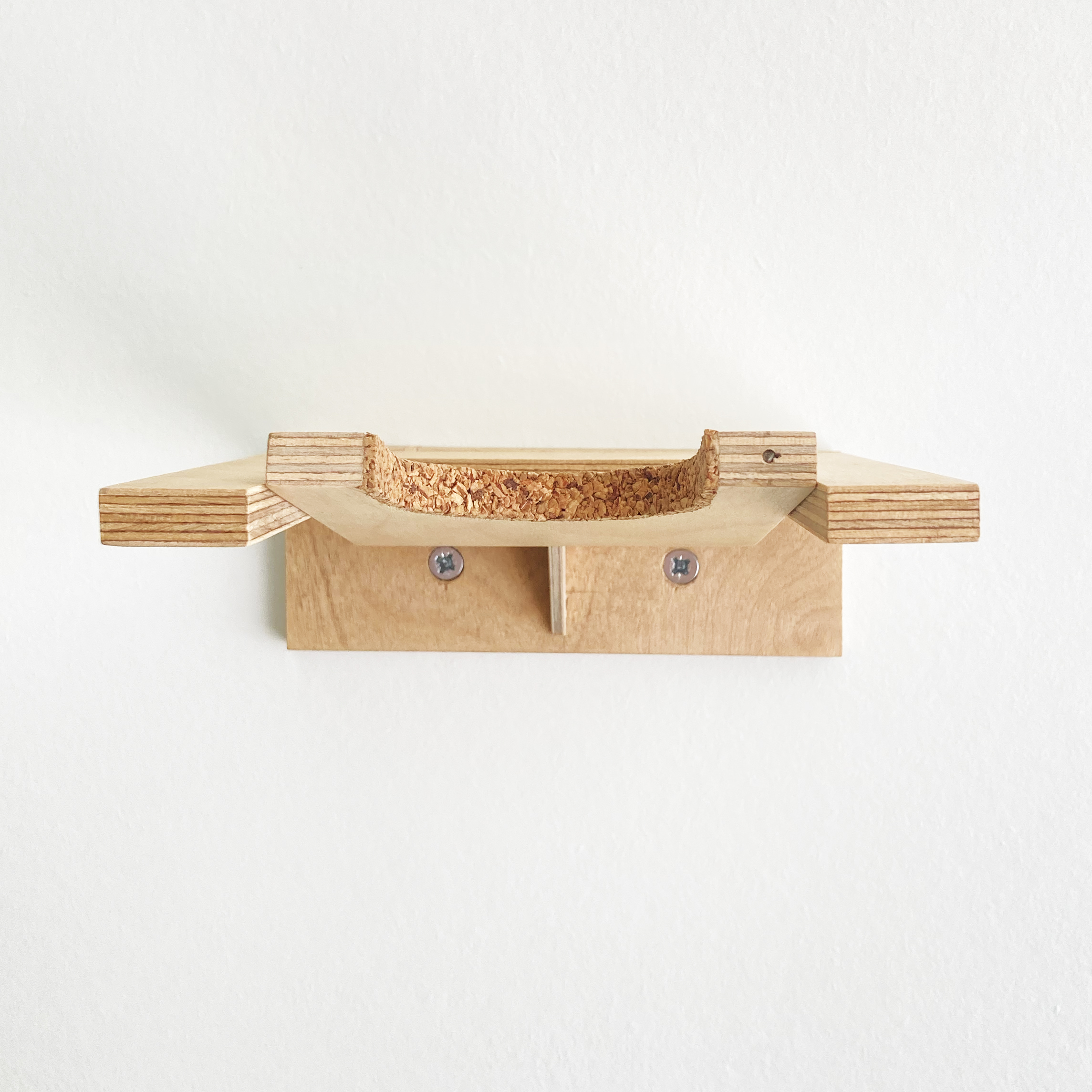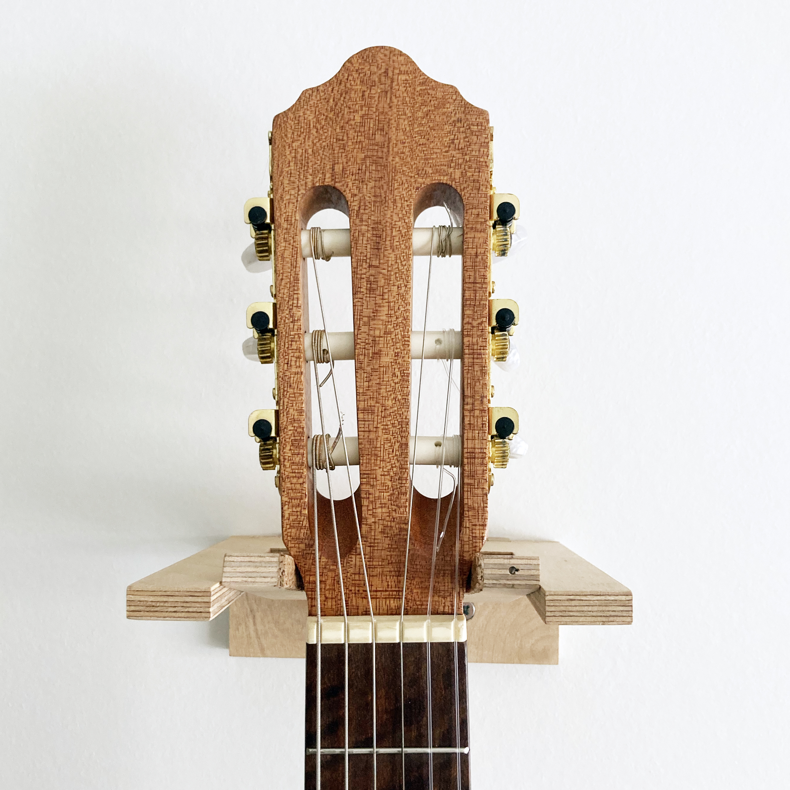 Produzido em contraplacado de bétula e revestido com verniz natural. O contacto entre o instrumento e o suporte é coberto com cortiça de forma a proteger seu instrumento de arranhões. O suporte é adquirido embalado em caixa própria e são fornecidos 2 parafusos para aplicação na parede.